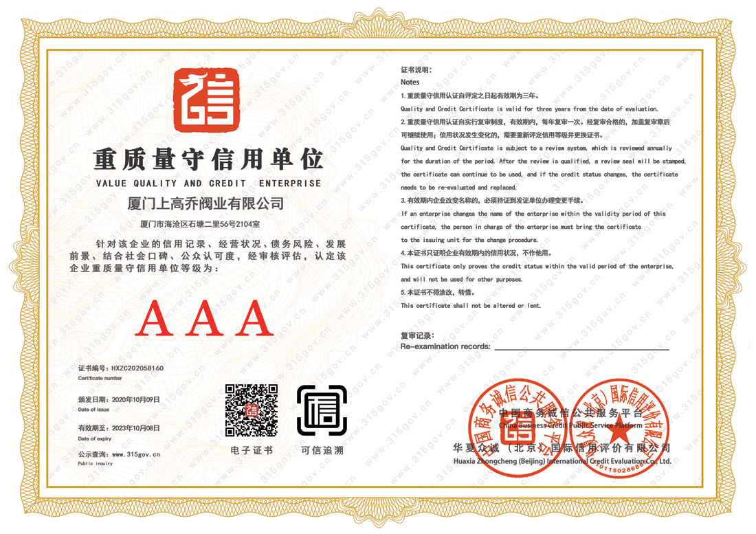 企業(yè)信用等級(jí)證書(shū)