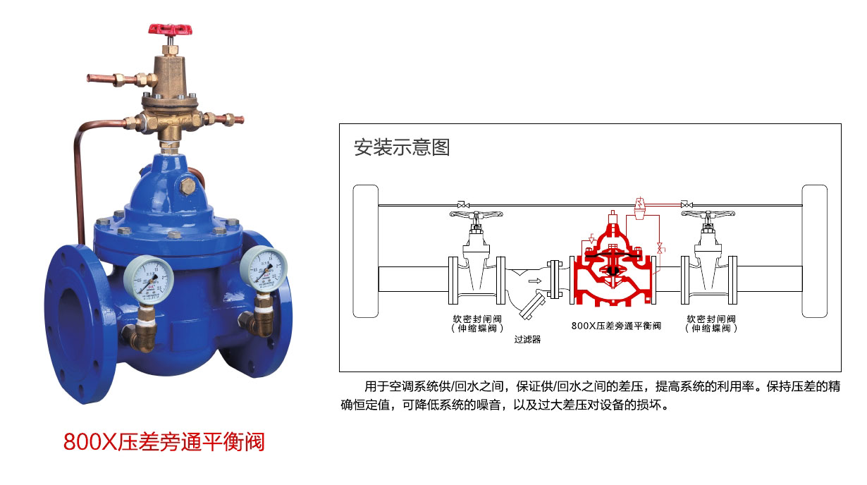 主閥安裝在配水管路需控制流量和壓力的管路中,保持預(yù)定流量不變,將過大流量限制在一個預(yù)定值,將上游高壓減為下游低壓。