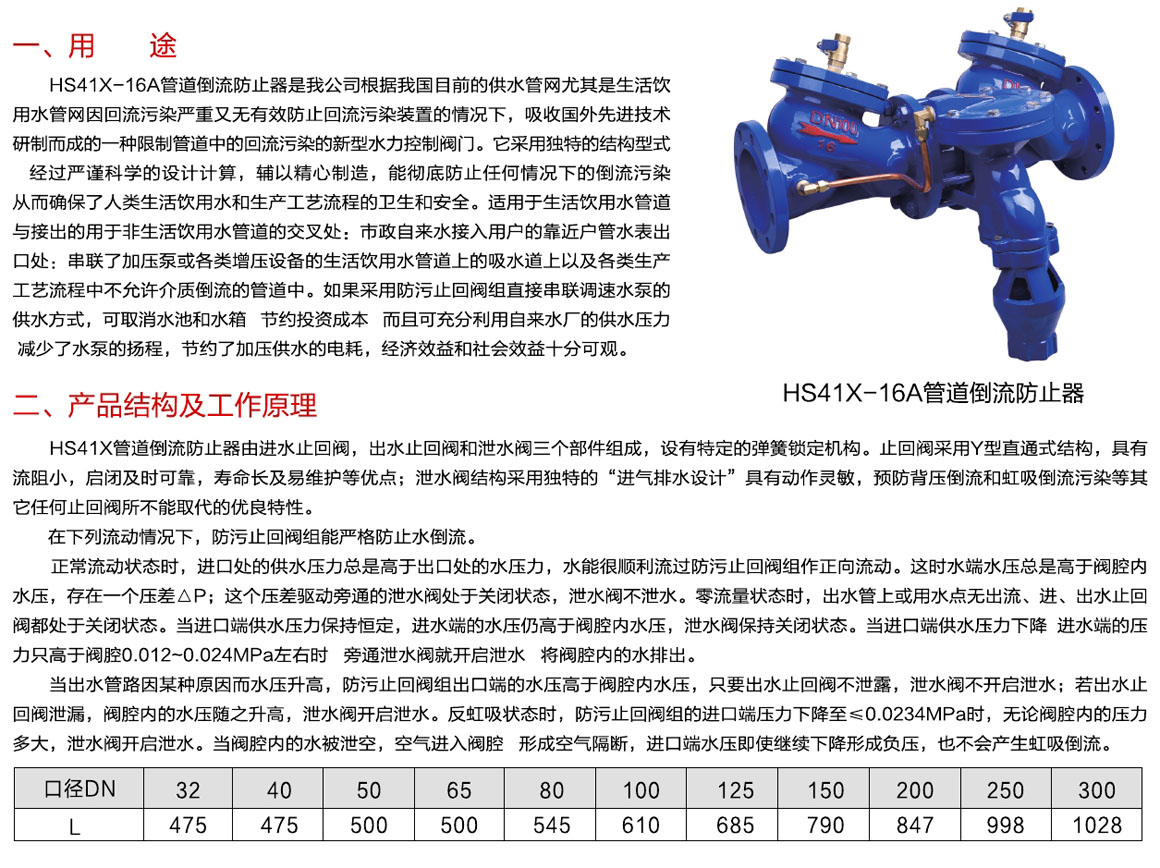 管道倒流防止器 HS41X-16A